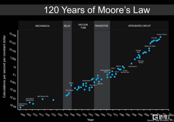 摩尔定律:集成电路上可以容纳的晶体管数目约每18个月便会增加一倍