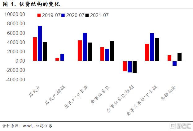 可以看到7月份,居民部门的信贷规模相比于往年同期出现了明显的下滑。而企事业单位的贷款总规模虽然相比于往年同期有所回升,但是结构有所恶化,可以看到企业中长期贷款回落而票据融资规模则明显回升。