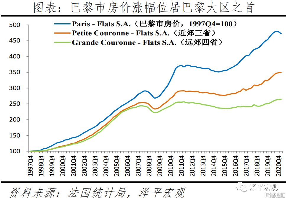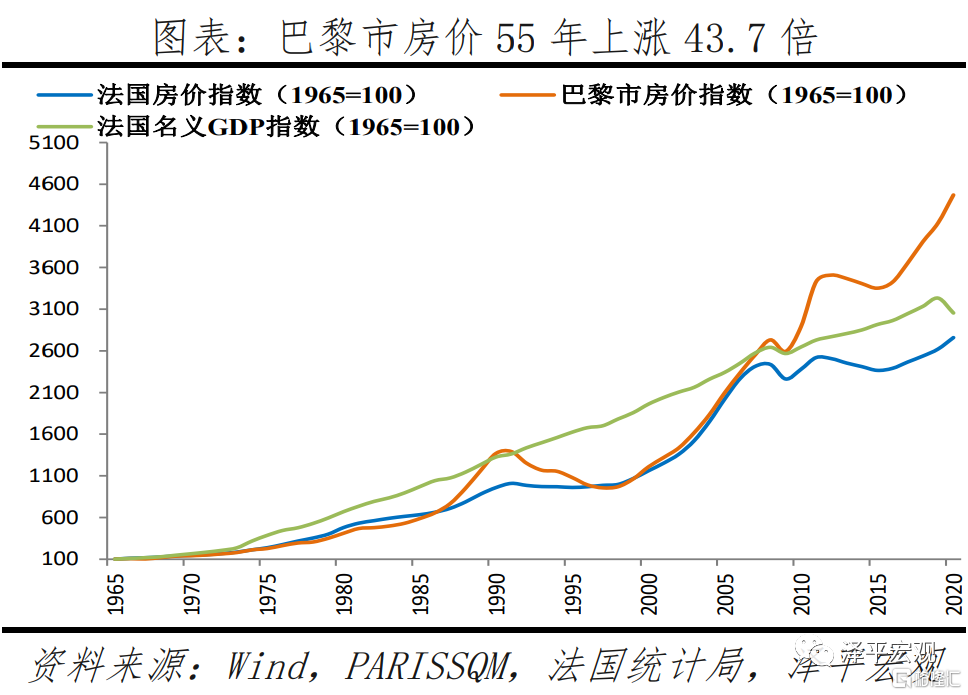 2.2 法国:巴黎市房价55年上涨44倍,涨幅超过周边地区