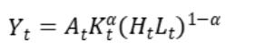 古典经济学中的长期增长理论(Neoclassical Growth Theory)主张,决定经济增速最核心的三个要素为资本累积,劳动力或人口增长,以及生产率提升或技术进步。新古典经济学同时主张以生产函数来阐述经济长期增长的潜在动力,其中最典型的代表为Cobb–Douglas生产函数,而最被广泛引用的模型为索洛增长模型(Solow–Swan Model)。下面我们用一个标准的Cobb–Douglas生产函数来做简要说明。具体如下: