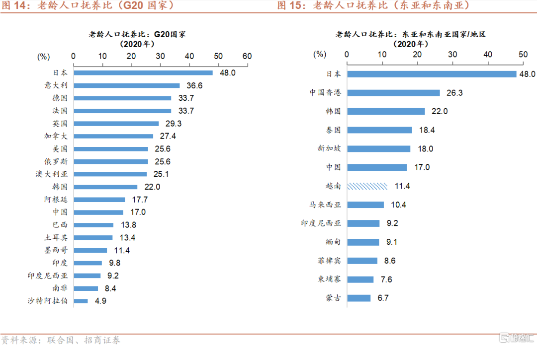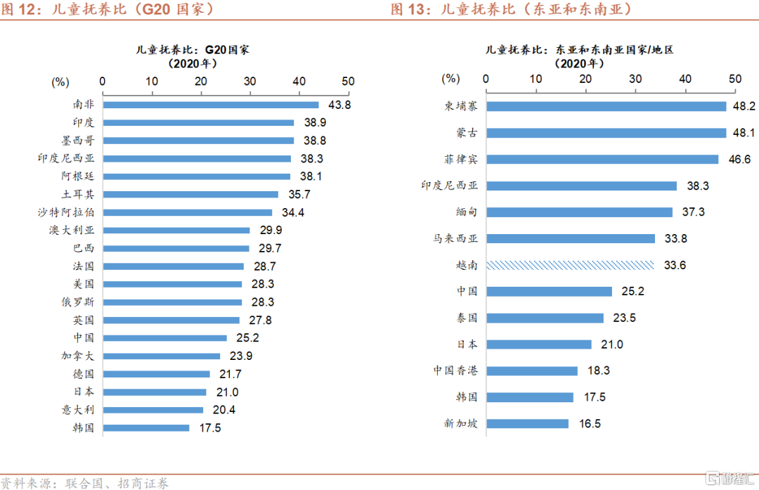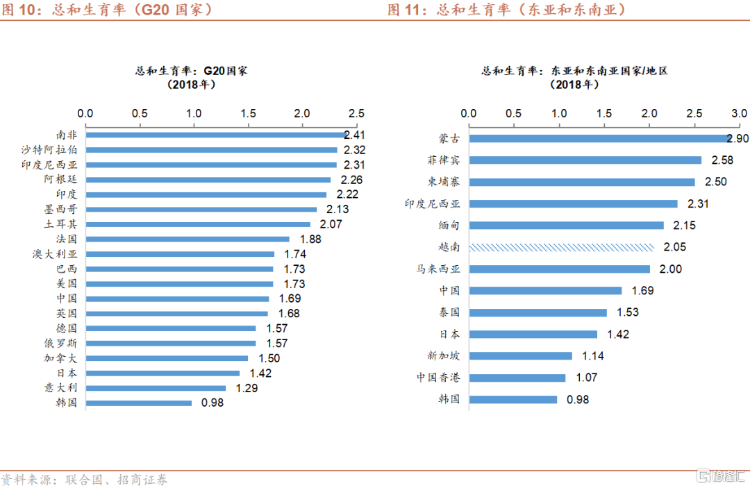 随着人口结构的变化,老龄化的加剧,适龄劳动人口总量的减少,中国经济未来增长动力对劳动力数量的依赖将逐渐减少,需要通过提高科技自主创新能力,加快科技发展,以及改善资源配置,以帮助中国将全要素生产率维持在中等增速,并将总体经济增速维持在一个合理的水平。相对而言,越南的适龄劳动人口总量在未来20年仍然处于上升区间,因而仍将成为经济增长的主要驱动力。