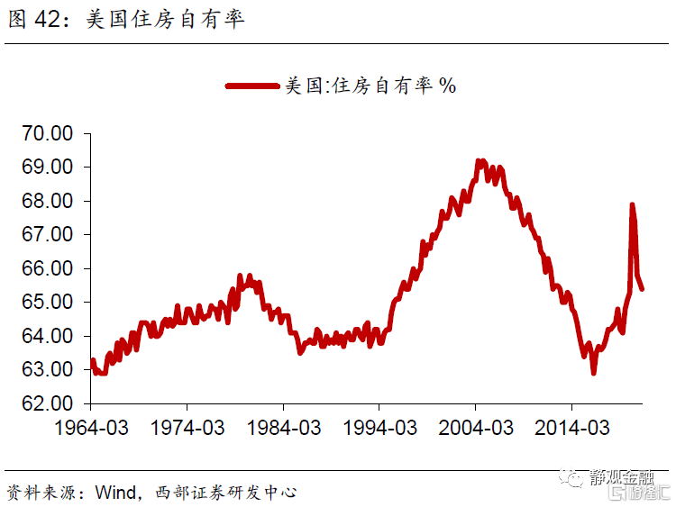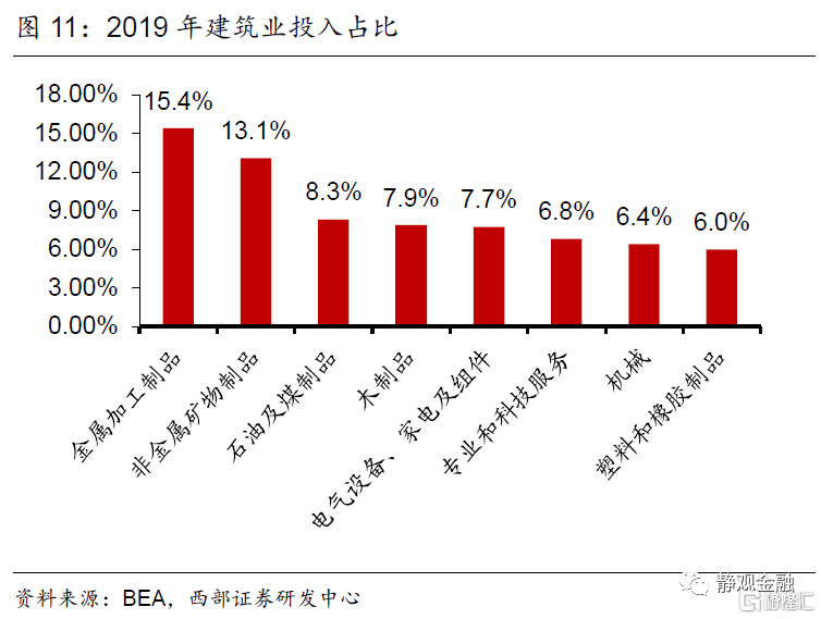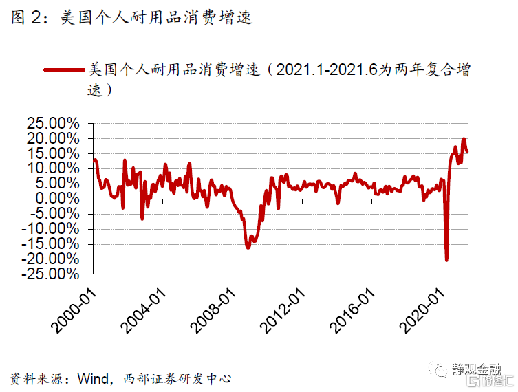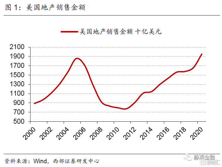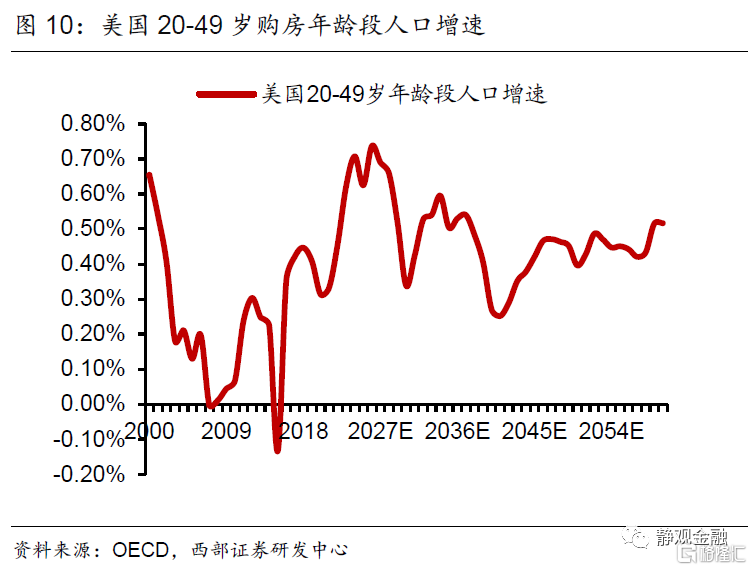 美国处于2016-2026年10年地产上升周期的中间位置。一国地产趋势或有三点影响因素:城镇化、信用环境及购房年龄人口。2018年美国城镇化率为82.3%,为中性因素;2021Q2住房自有率为65.4%,2004年历史高点69.2%。2020Q4美国居民杠杆率(信贷占GDP比重)为79.5%,远低于该指标过去20年的中位数84.2%。根据OECD的预测美国20-49岁购房年龄人口增速自2016年触底回升、转正且上升趋势持续至2026年。由于城镇化率、住房自有率及居民杠杆率等因素中性偏积极,因此购房年龄段人口增速回升意味着美国地产处于上升周期。换言之,目前美国地产处于10年上升周期的前半程。当然,受改善型住房需求激增和购房周期因无法外出而被压缩等因素提振,2020年5-12月美国地产销售异常强劲,而当下美国地产再度降温至合理上升趋势中。地产上升周期意味着美国对木材、金属制品等实物资产需求将强于金融危机后。
