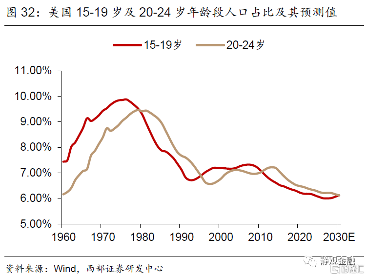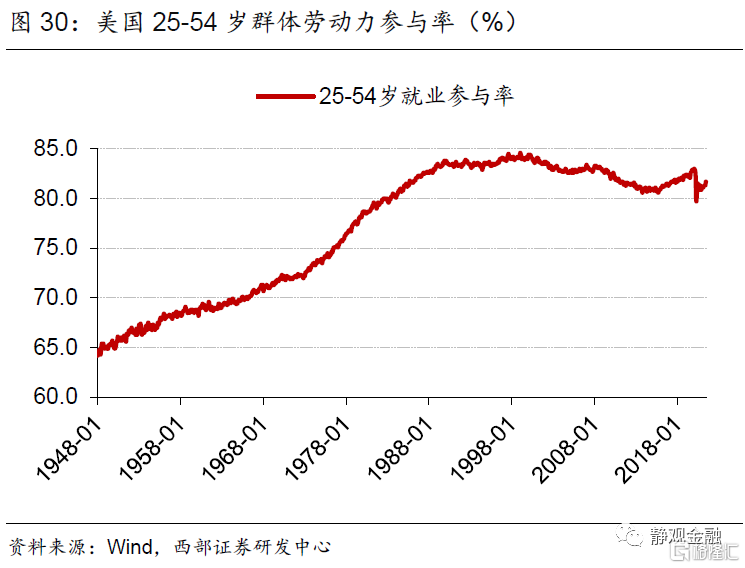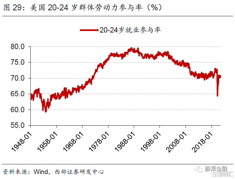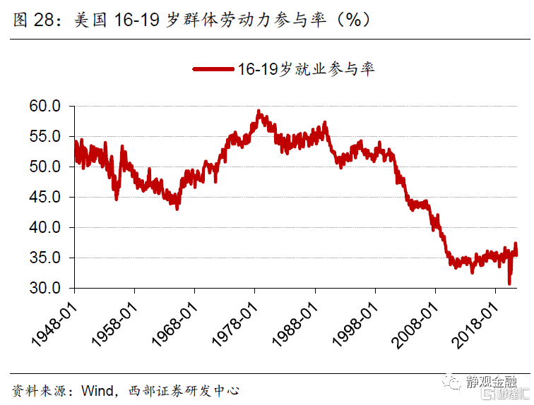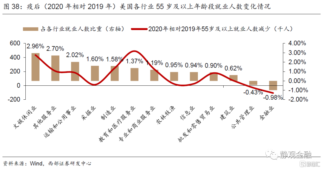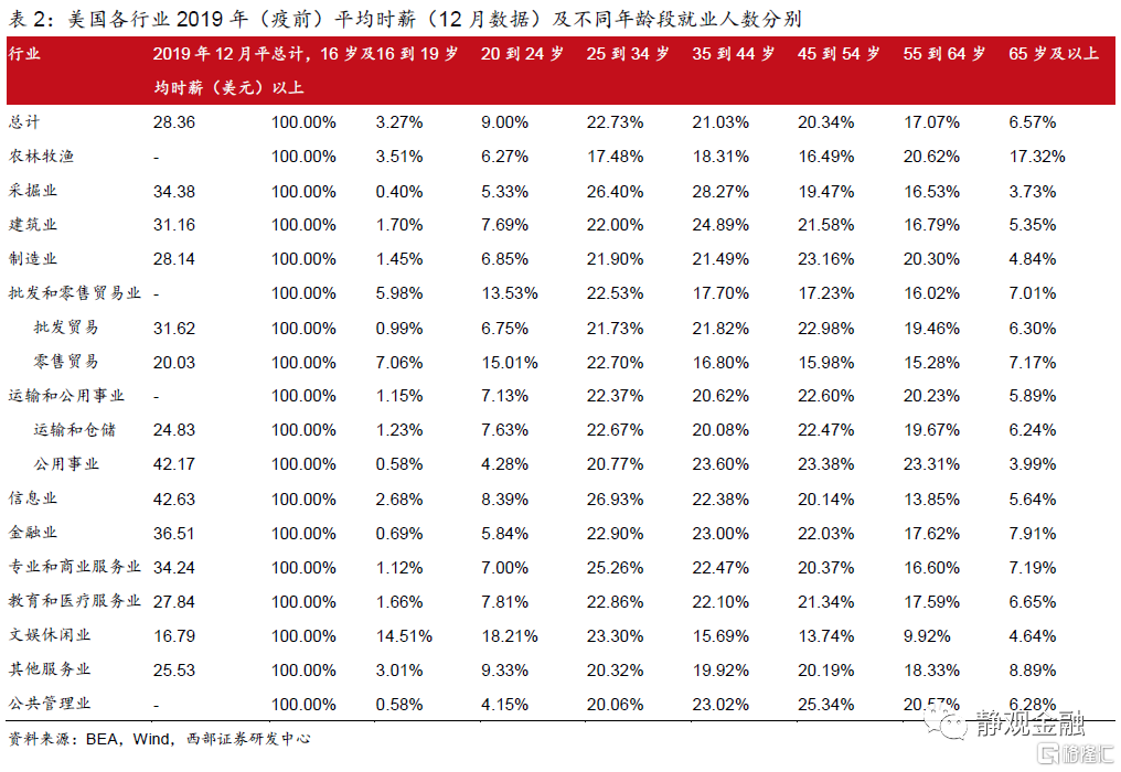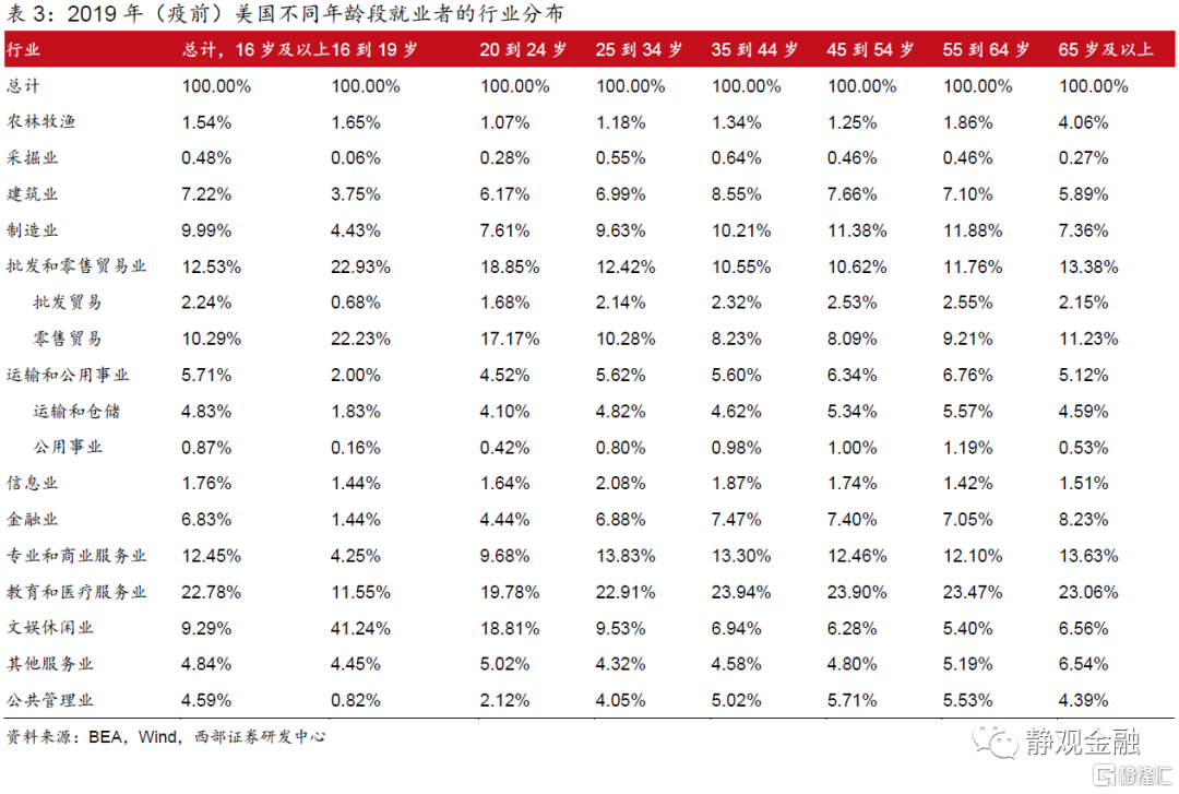 2. 疫后美国参与就业劳动力将有所“年轻化”,特别是部分服务业