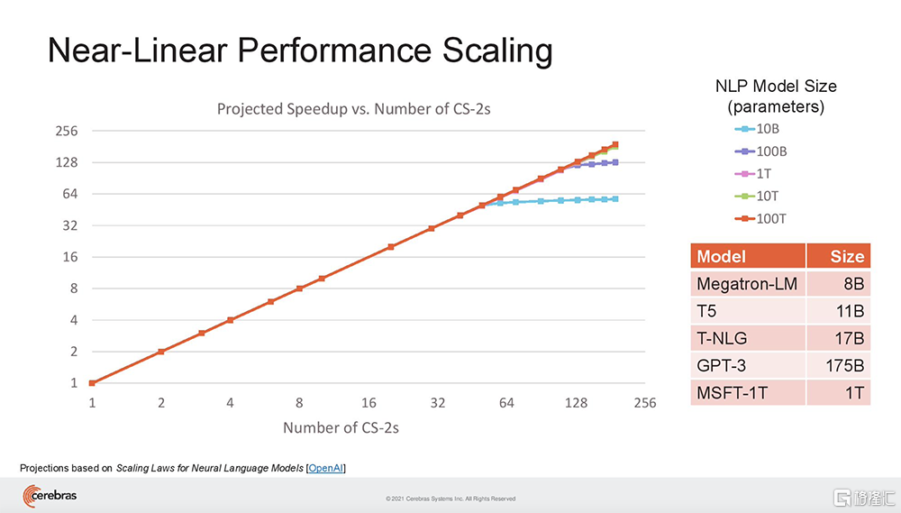 此外,Cerebras还实现了192台CS-2 AI计算机近乎线性的扩展,从而打造出包含高达1.63亿个核心的计算集群。