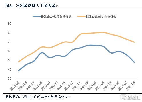 第四,利润端降幅大于销售端。BCI利润前瞻指数下行至48.0,与此对应的是总成本指数仍在相对高位。这与工业企业当前的利润格局整体偏上游有关,在前期《利润占比继续向上游倾斜》中,我们做过详细阐述。