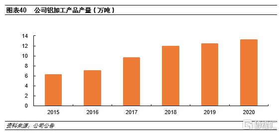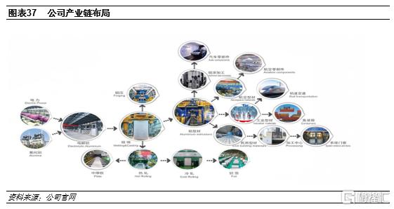 公司自成立以来,不断健全产业链,向上下游延伸,深耕铝行业,改良、精化上游生产工艺,研发、 突破下游产品技术,在 45平方公里范围内形成了一条铝加工全产业链 , 构建了以电力、氧化铝、电解铝、铝挤压材、铝压延材、锻造及铝精深加工为主体的产业链经营模式。公司产品种类齐全,主要用于加工航空板、汽车板、新能源车用铝材、高速列车、铁路货运列车、船舶用中厚板、罐车、箱车、城市地铁、客车、电力管棒、铝箔坯料、高档铝塑复合板、动力电池箔、食品软包装、香烟包装、医药包装、空调箔、罐料、高档 PS版基、幕墙、铝合金门窗、集装箱以及大型机械等。