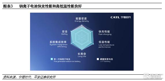 倍率性能好,快充具备优势。依赖于开放式3D结构,钠离子电池具有较好的倍率性能,能够适应响应型储能和规模供电,是钠电在储能领域应用的又一大优势。在快充能力方面,钠离子电池的充电时间只需要10分钟左右,相比较而言,目前量产的三元锂电池即使是在直流快充的加持下,将电量从20%充至80%通常需要30分钟的时间,磷酸铁锂需要45分钟左右。