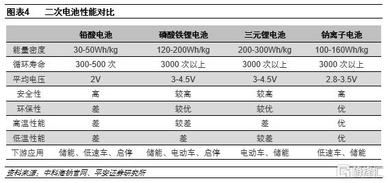 能量密度弱于锂电,强于铅酸。在能量密度方面,钠离子电池的电芯能量密度为100-160Wh/kg,这一水平远高于铅酸电池的30-50Wh/kg,与磷酸铁锂电池的120-200Wh/kg相比也有重叠的范围。而当前量产的三元电池的电芯能量密度普遍在200Wh/kg以上,高镍体系甚至超过250Wh/kg,对于钠电池的领先优势比较显著。在循环寿命方面,钠电池在3000次以上,这一水平也同样远远超出铅酸电池的300次左右。因此,仅从能量密度和循环寿命考虑,钠电池有望首先替代铅酸和磷酸铁锂电池主打的启停、低速电动车、储能等市场,但较难应用于电动汽车和消费电子等领域,在这两大领域锂电仍将是主流选择。