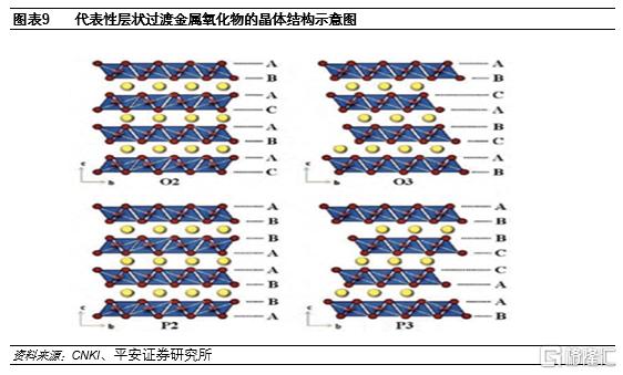 根据钠含量高低以及晶体结构,过渡金属氧化物正极分为层状过渡金属氧化物和隧道型过渡金属氧化物,后者稳定性较好,但比容量低,市场关注度较低。层状过渡金属氧化物由MO6八面体分层排列而成,钠离子位于八面体构成多层结构的层间。根据钠离子排列的相对位置,层状过渡金属氧化物正极分为P型和O型,并于O3型和P2为主。