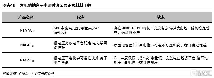 我们认为由于三大正极材料体系都需包含可变价的过渡金属,未来钠离子电池产业发展对过渡金属需求的推动较为明确,其中资源较丰富的锰和铁尤其值得关注。