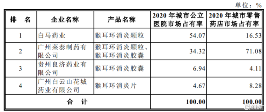 (猴耳环消炎颗粒市场排名情况,来源:招股说明书)