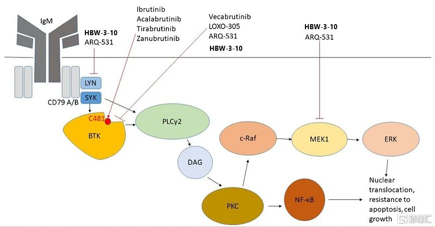 国内企业中,烨辉医药、海博为药业(HBW-3-10、HBW-3-20)也在开发新一代抗耐药可逆性BTK抑制剂。