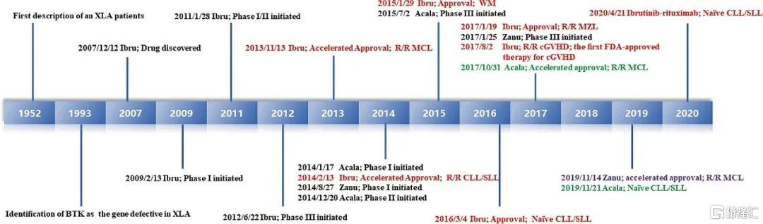 BTK抑制剂靶点发现和临床开发的关键里程碑(来源:Leukemia)