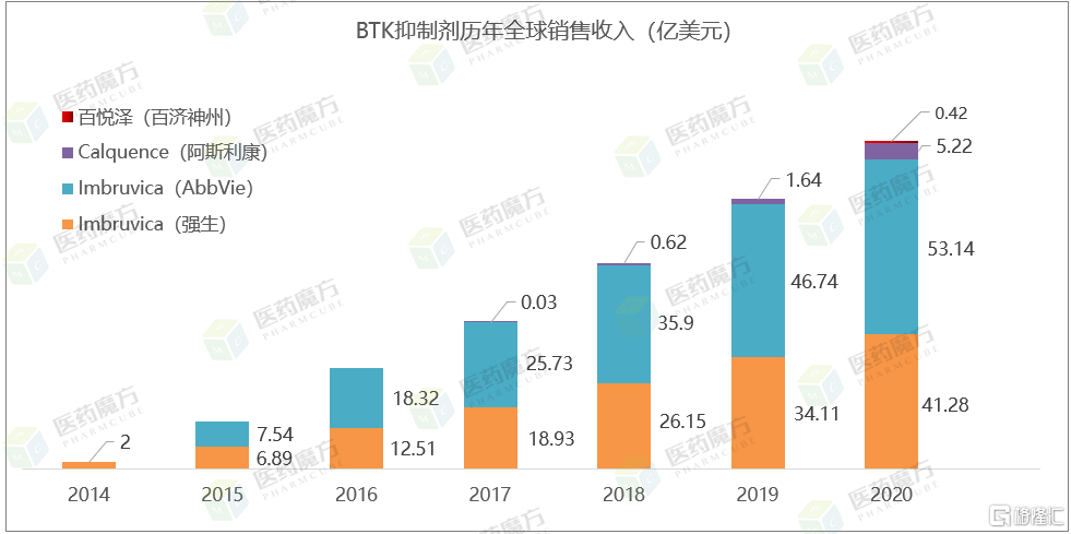 BTK抑制剂历年全球销售收入(来源:企业财报)