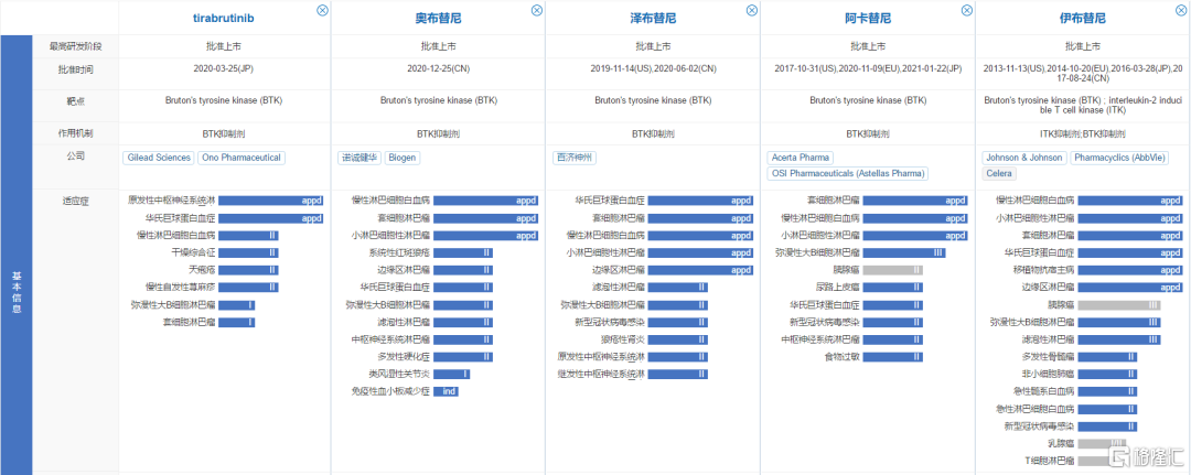 已上市BTK抑制剂批准适应症(来源:NextPharma)