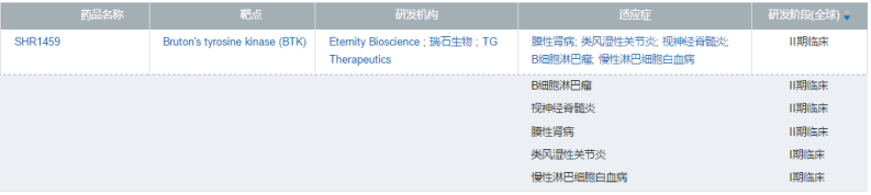 6月30日,恒瑞发布公告,称其子公司瑞石生物研制的SHR1459片用于原发性膜性肾病(PMN)的临床试验申请获得国家药监局的批准。目前全球仅恒瑞一家将BTK抑制剂开发用于治疗原发性膜性肾病。