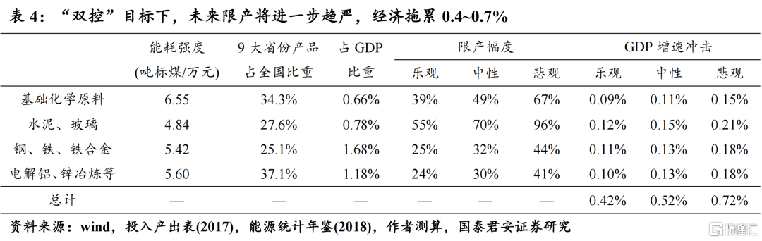 2.2  “双控”目标下,未来限产节奏不会发生大幅纠偏,经济拖累0.4%~0.7%