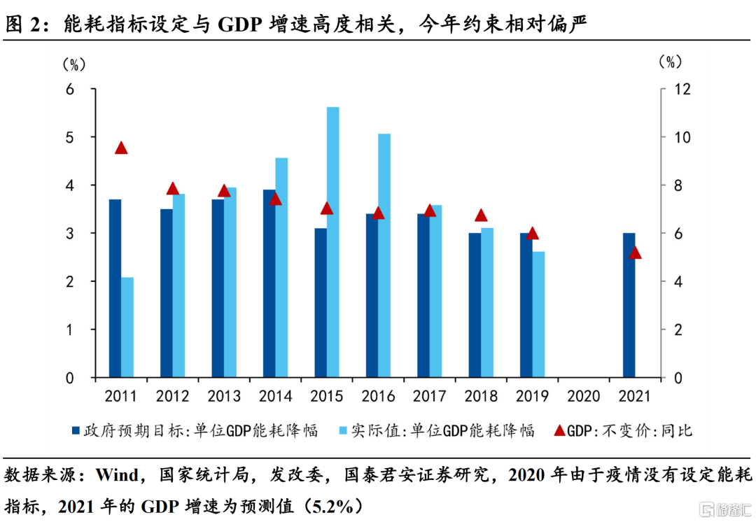 “碳中和”元年背景下,“双控”政策的能耗强度约束相对往年较为严格,同时今年的政策执行力度几乎刚性。