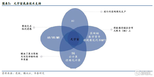 5G、云计算及边缘计算的大规模应用渗透将为用户提供随时随地地联通虚拟世界的支持;基于深度学习的AI人工智能提升数据采集和处理效率,并为数据采集处理内容生产提供动力;VR/AR将为我们带来更具沉浸感和临场感的数字化生活体验,为全面的用户体验升级提供支持。