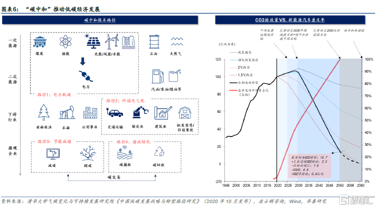 碳中和承诺推动低碳经济高速发展。人类现代工业文明的发展离不开温室气体的排放,根据世界气象组织的测算,到2020年全球平均温度较工业化前水平高出1.2摄氏度,一起出现的是海洋酸化和含氧量持续下降、冰川消融和各类极端天气。在全球气候不断恶化之下, 2020年9月22日,习近平总书记在第七十五届联大一般性辩论上宣布中国二氧化碳排放力争2030年前达到峰值,努力争取2060年前实现碳中和。“2030实现碳达峰,2050-2060实现碳中和”成为了全球各国政府的共识,各类电力脱碳、终端电气化、节能减排和排放碳化等政策得以积极推动。