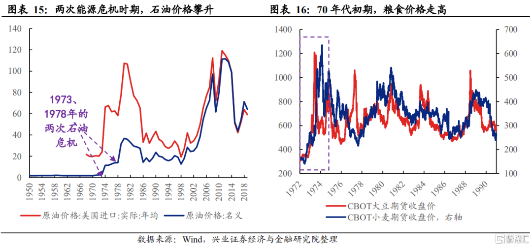 这一时期中,第一次石油危机和粮食危机所形成的成本推动型高通胀是分子端基本面衰退和分母端流动性收紧的“元凶”。