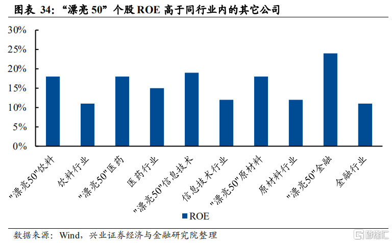 初期,基本面为锚,催化“漂亮50”上涨,其中,行业集中度和ROE的提升是核心因素。1)“漂亮50”所处行业的集中度均出现了上涨,而“漂亮50”这些龙头股将充分受益,例如60年代以来,饮料行业内的企业数量锐减6成以上,前20家企业市场份额提升近20%。2)“漂亮50”个股的盈利能力强于同行业其他企业,例如,“漂亮50”中赢料行业个股的ROE均值为18%,高出行业平均7pct,在流动性宽松和风险偏好提升背景下,高ROE使龙头股迎来价值重估。
