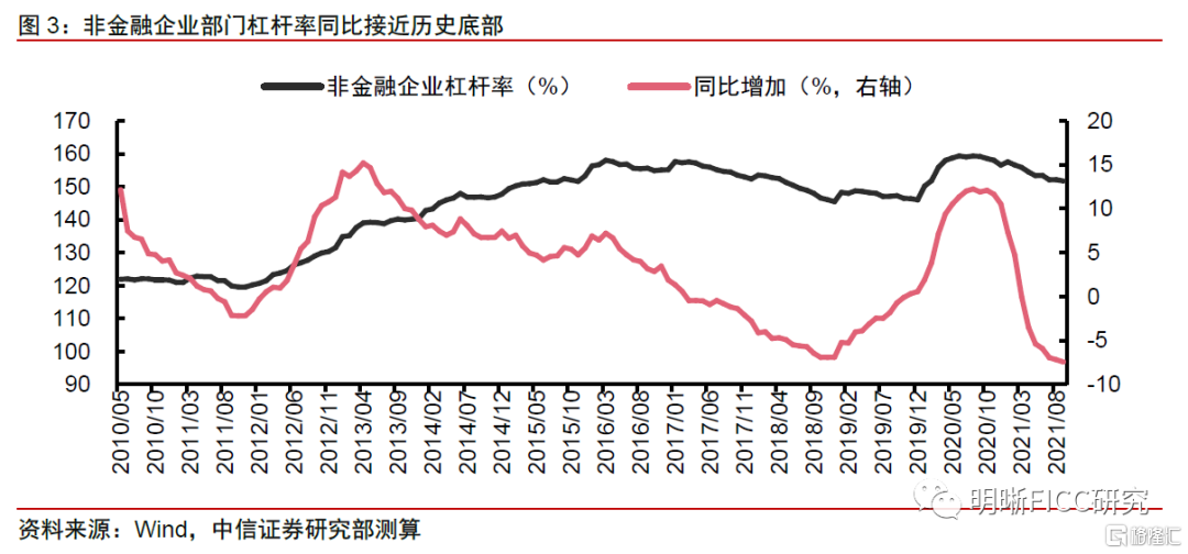 据我们测算,三季度宏观杠杆率较二季度进一步回落0.8个百分点至264.6%,四季度大概率是本轮杠杆率底部,而杠杆结构上已经体现出逆周期的特征。从央行针对通胀的判断以及货币政策定调来看,短期滞胀可能难以成为宽信用的掣肘。