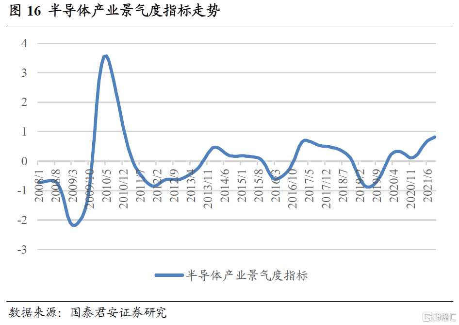 但是,在本轮5G周期中,景气向下游应用的传导较慢,目前仍未出现爆款应用,导致计算机及传媒两个行业景气度未有明显提升,因此在TMT板块中重点关注直接受益于半导体产业链景气扩张的半导体行业。