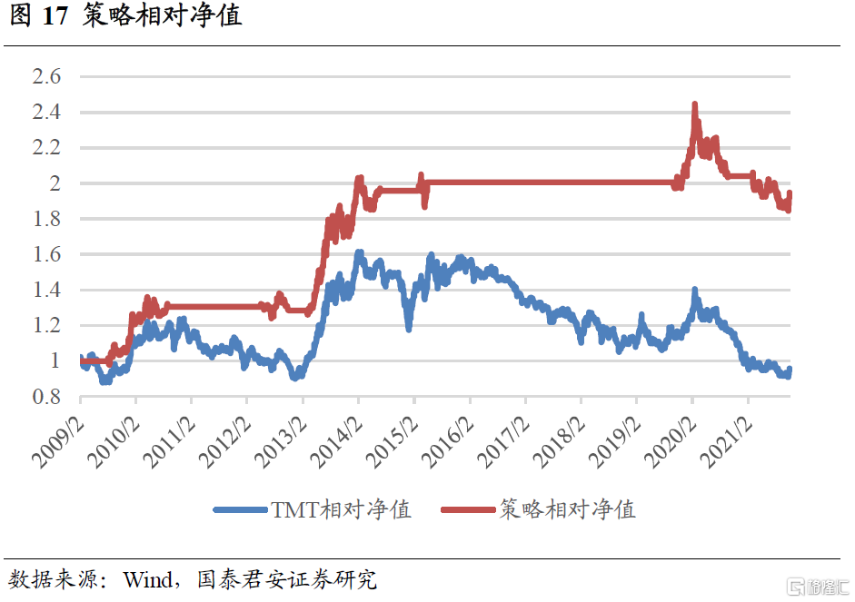 TMT板块主要包括通信、电子、计算机、传媒四个子行业,四个行业的申万行业指数等权加总得到TMT板块指数。板块相关景气指数及投资策略的构建方法参见国君金工专题报吿《科技周期量化下的行业配置》,下面对主要结论进行展示。