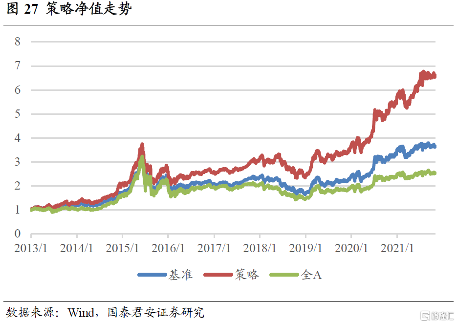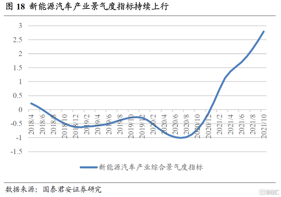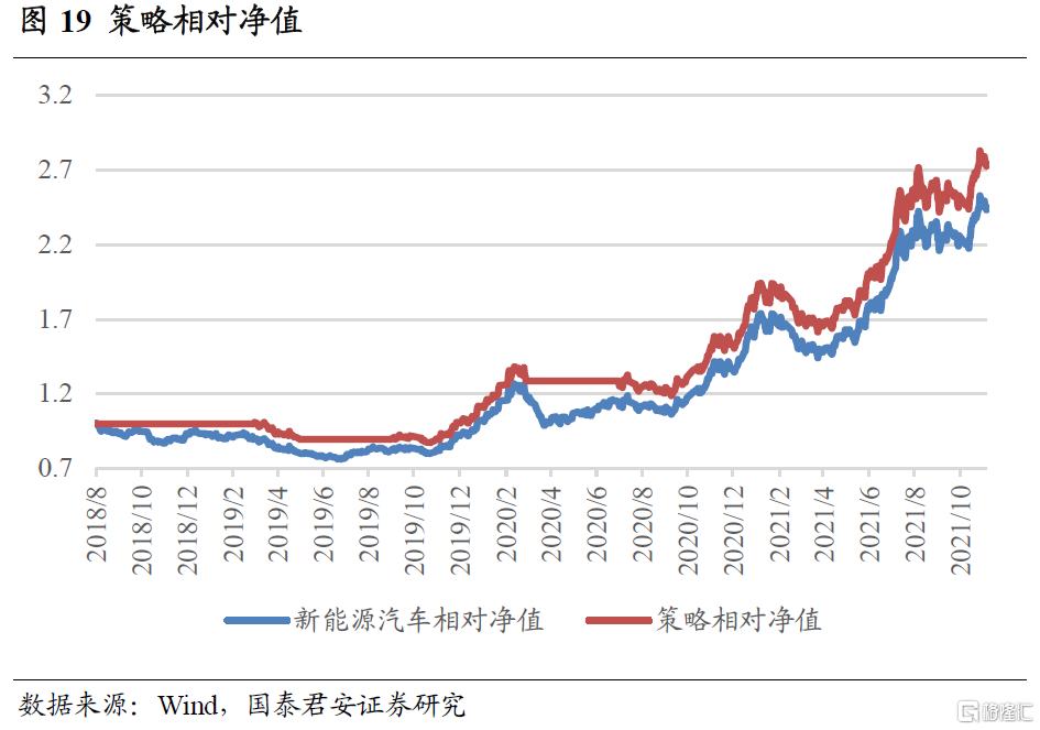 新能源汽车产业链较长,涉及多个申万一级行业,我们将其作为一个整体进行分析。板块相关景气指数及投资策略的构建方法参见国君金工专题报吿《新能源汽车产业链基本面量化及策略配置》,下面对主要结论进行展示。