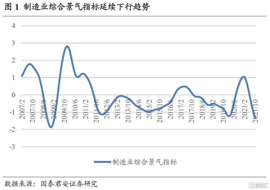 制造业综合景气指标延续下行趋势,经济持续承压。对于周期板块来说,其利润核心围绕产品价格、销量的变化,与经济周期强相关,周期公司相较于其他板块来说更难摆脱周期的影响,因而其业绩表现和股价变动也就与经济景气密切相关。从最新数据来看,受地产调控、能耗双控、局部疫情等多重因素的影响,制造业景气仍处于下行趋势中,经济显著承压。
