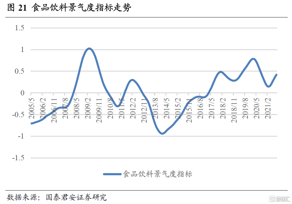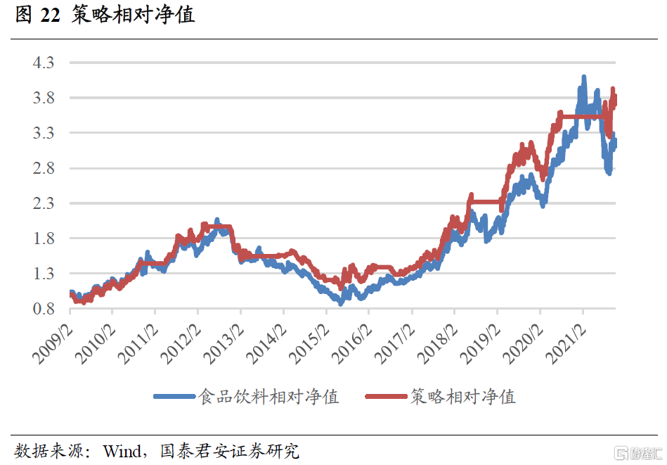 消费板块中我们主要关注食品饮料、家用电器、农林牧渔三个行业,相关景气指数及投资策略的构建方法参见国君金工专题报吿《消费板块基本面量化框架与策略配置》,下面对主要结论进行展示。