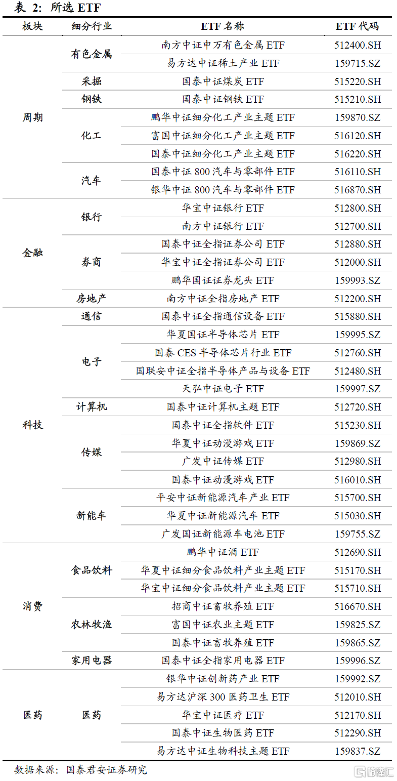 其中,绝大部分ETF的上市时间较晚,在进行历史回测时,若ETF当时还未上市,则以其所跟踪的指数收益率进行替代。