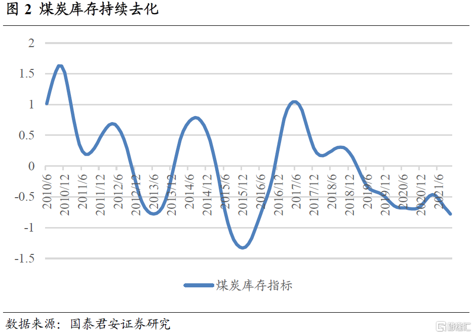 煤炭供给限制放松但供需仍为紧平衡,煤炭库存持续去化。虽然需求端走弱,且发改委保供稳价政策下煤炭供给持续增加,但目前煤炭供需关系仍较为紧张,煤炭库存继续走低。