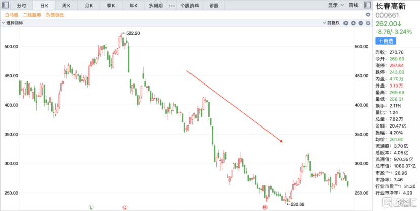 与济川药业涨停形成鲜明对照的是生长激素龙头长春高新的连续下跌,受集采悲观情绪公司股价已经腰斩,如今又有新玩家入场,未来的日子只会越来越难。