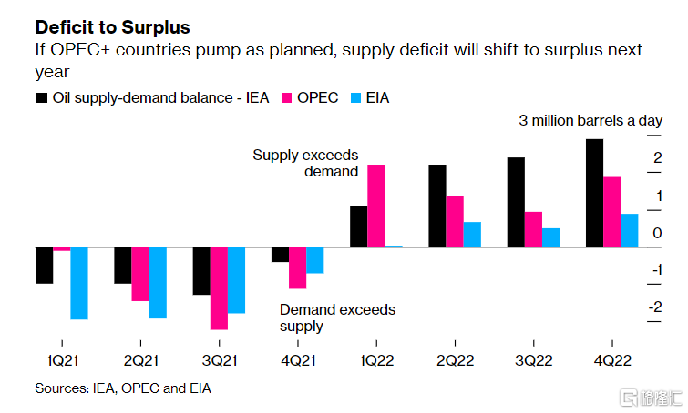 IEA、OPEC和EIA的最新展望都显示,全球石油市场赤字将在本季度缩小,并在明年转为过剩——前提是OPEC+石油生产商的产量都达到了供应协议下的目标。