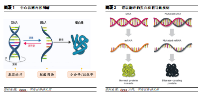基因层面疗法相比蛋白质靶向药物具有更大潜力。如果能直接从上游对蛋白质表达直接进行调控,将有望能够避开以上问题,因此,实现个性化基因水平治疗的药物潜力将超过当前蛋白质靶向疗法,例如核酸药物。核酸药物是指人工合成的具有疾病治疗功能的DNA或RNA片段,能够直接作用于致病靶基因或RNA片段,旨在改变宿主遗传信息的编辑,具有治愈疾病的潜力,成为“治标治本”的治疗选择。此外,由于核酸药物理论上可以调节任何基因表达,将药物靶点直接扩大到蛋白质上游,因此不会受限于蛋白质的成药性问题,有望打破不可成药性难题。