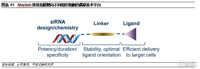 公司致力于开发出靶向其他组织的偶联递送系统。受益于丰富的研发经验,公司在其他基于偶联的siRNA递送技术上也取得了持续的进展,将siRNA通过一个稳定、特异性的连接子与靶向不同组织或细胞的配体偶联在一起,有望能够提高RNAi疗法在治疗肝脏之外组织时的疗效和稳定性。为进一步拓展RNAi疗法的应用范围,Alnylam还与PeptiDream就肽-siRNA偶联药物开发达成合作,将共同选择和优化肽,通过与靶细胞上表达的受体的特异性相互作用,将小干扰RNA(siRNA)分子定向输送到多种类型细胞和组织。
