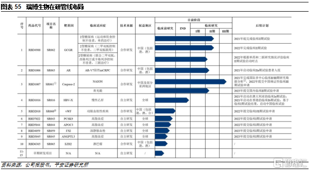 公司的技术平台主要包括GalNAc和脂质体。公司使用了GalNAc肝靶向递送技术,并围绕肝源靶点开发了针对感染性疾病、代谢类疾病、血液系统疾病和罕见病等领域的诸多产品。同时,公司积极开发肺靶向、中枢神经靶向、局部给药等递送系统,以期实现其他器官组织的递送突破,开展相关适应症的品种开发。此外,公司通过与LTC公司合作,掌握了基于脂质体的小核酸递送技术,形成了在递送技术上的技术储备。凭借技术平台,公司目前已开展了十余款产品的研究,主要围绕糖尿病、肿瘤、眼科疾病、乙肝、高血脂等疾病领域开展,其中研发进度靠前的管线主要是通过合作引进的产品。