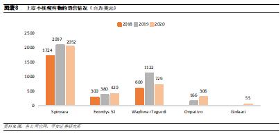 上市小核酸药物中已出现重磅品种。2020年全球小核酸药物销售额在35亿美元左右,其中销售最高的是Ionis和Biogen合作开发的Spinraza,作为全球首款获批用于治疗脊髓性肌萎缩症的药物,其在2020年实现销售收入20.52亿美元。脊髓性肌萎缩症是一种罕见致命性遗传病,患者主要表现为全身肌肉萎缩无力,身体逐渐丧失各种运动功能,甚至是呼吸和吞咽。脊髓性肌萎缩症在新生儿中的患病率为1:6000-1:10000,中国大约有患儿3~5万人,Spinraza的上市为患者提供了更多治疗选择。小核酸药物虽然售价昂贵,但由于目前上市的产品主要集中在罕见病领域,针对的患者群体数量较为有限,因此小核酸药物的销售额还未出现爆发式增长,未来伴随研发的持续推进,有望出现更多重磅品种。