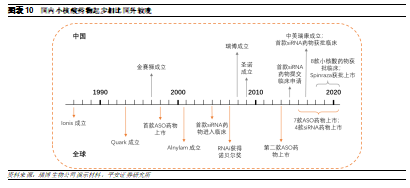前期探索:1978年哈佛大学Zamecnik等人首次提出反义核酸概念,经过20年发展,1998年首款ASO药物Vitravene获批上市。同年,Andrew Fire和Craig Mello在线虫中首次揭示了RNAi作用机制,并因此获得诺贝尔奖。2001年Elbashir等人首次利用体外合成的siRNA实现了哺乳动物细胞中的基因表达调控,标志着RNAi开始从研究走向临床应用。