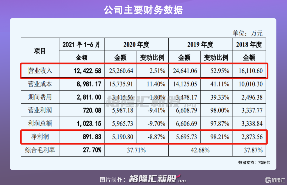2018年至2020年,贝隆精密实现营收分别为1.61亿元、2.46亿元、2.53亿元;同期录得净利润分别为2874亿元、5696亿元、5191亿元。其中,2020年净利润下滑系主要原材料塑料粒子和模具零件价格较2019年上涨了9.44%,但产品平均单价并未随之提升,导致产品生产成本上涨。