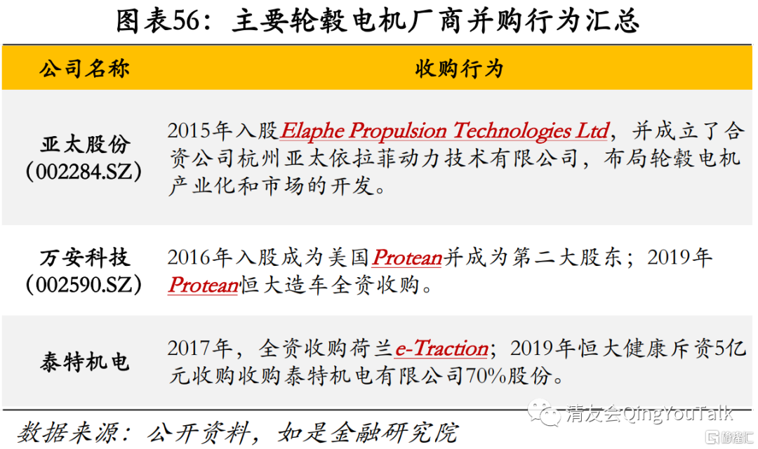 轮毂电机——新概念技术值得关注,同时应警惕技术路径风险。轮毂电机是将车的动力系统、传动系统、刹车系统全部集成到轮毂的系统。一方面应用轮毂电机可以最大程度简化车辆的结构,节省出更多的空间与重量,减少了复杂机械结构导致的维修与保养成本。另一方面,若车辆每个车轮都安装轮毂电机可实现每个轮胎都是单独驱动的,从而实现多种复杂的驱动方式,传统燃油车的差速锁与全时四驱系统将不再占有任何优势,因此轮毂电机对于特种车辆有较强应用价值。但与此同时,轮毂电机增大簧下质量和轮毂的转动惯量进而影响车辆操控性能,轮毂电机系统所占物理空间过小导致加速与制动性能有限,另外轮毂电机系统对密封、散热也有较高要求,因此警惕技术路径风险也值得警惕,应秉持早期投资思路贯彻轮毂电机赛道投资,技术路径正确则全赢,路径技术错误则全输。由于轮毂电机技术在世界范围内仍不是技术主流路径,导致国内相关厂商较少,但亚太股份、万安科技、泰特机电等企业先后通过与国际厂商合资进行合作,快速推动轮毂驱动电机的发展与在新能源汽车中的应用,其中万安科技与泰特机电已相继退出或被收购。