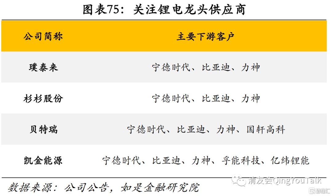 3.上游——电极、隔膜、电解液:关注宁德时代、比亚迪双龙头供应链