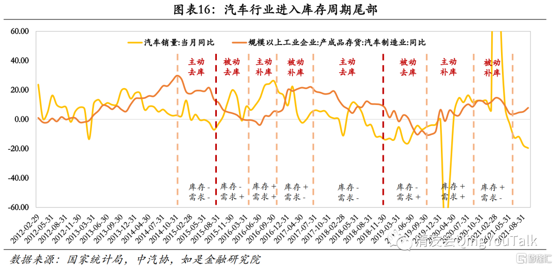 开启新周期的契机是汽车需求的回暖,但是经济升温需要时间,静待全新景气周期到来。疫情延迟汽车消费和芯片短缺加剧了库存周期的波动。一方面是疫情积压的需求基本在2020下半年和2021年初得到释放,因此三季度开始汽车销量相较于往年同期回落。另一方面是芯片短缺导致库存为产量不足托底,导致库存持续处于低位。内需不振叠加库存清理,加剧了主动去库存周期的波动,需求库存双双下行,新周期抬头难。如今销量回暖仍需时间,新周期开启须等待经济率先回暖。在乐观预期下,今年四季度可能将确认需求底部。