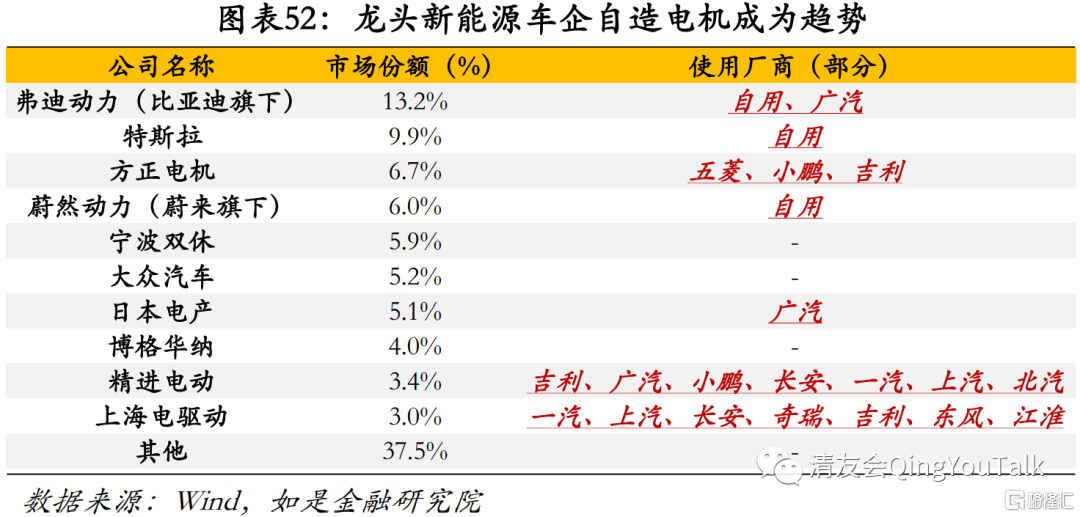 (2)电机:龙头车企自造电机将成为主流,关注轮毂电机等新概念技术