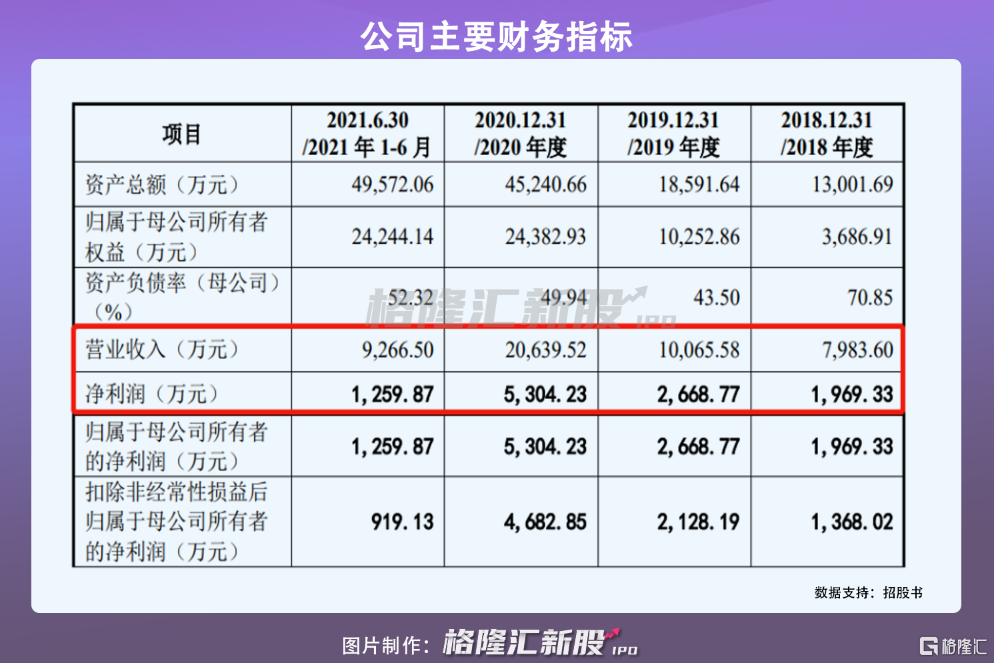 2018年至2020年,景业智能实现营收分别为7984万元、1.01亿元、2.06亿元;净利润分别为1969万元、2669万元、5304万元,均呈现一定增长态势。