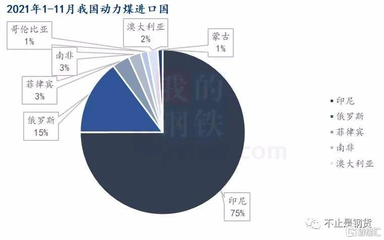 印尼不仅是全球最大的动力煤出口国,也是中国动力煤的主要进口国。2021年1-11月中国从印尼进口1.76亿吨动力煤,同比增加6200万吨,增幅54%,约占中国动力煤进口总量的75%。