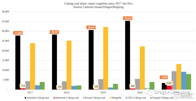 印尼对华焦煤出口量相对较小,去年1-11月份为62.2万吨,今年205.7万吨,增幅231%,但只占中国进口焦煤总量的4%。