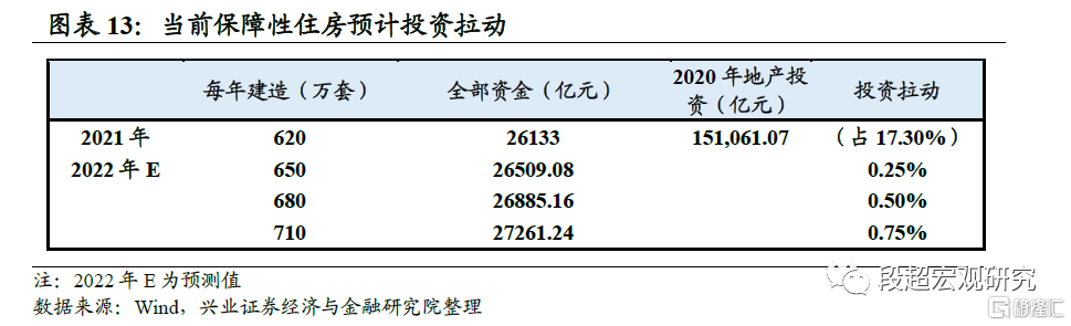 推动保障房建设扩容,可额外拉动地产投资约0.25-0.75个百分点。目前来看,政策加快发展保障性住房的思路已经明确,但尚未公布具体量化目标。2021年年均建设保障房约620万套,假设2022年多增30-90万套,对地产的投资拉动约为0.25%、0.50%、0.75%。
